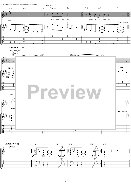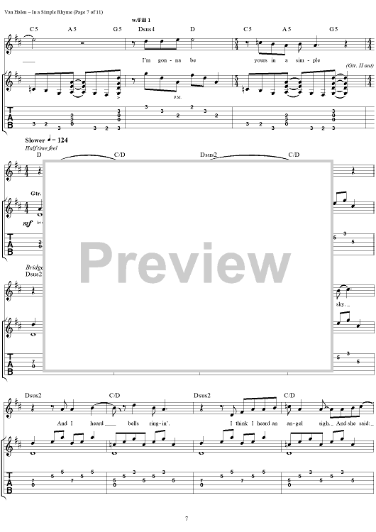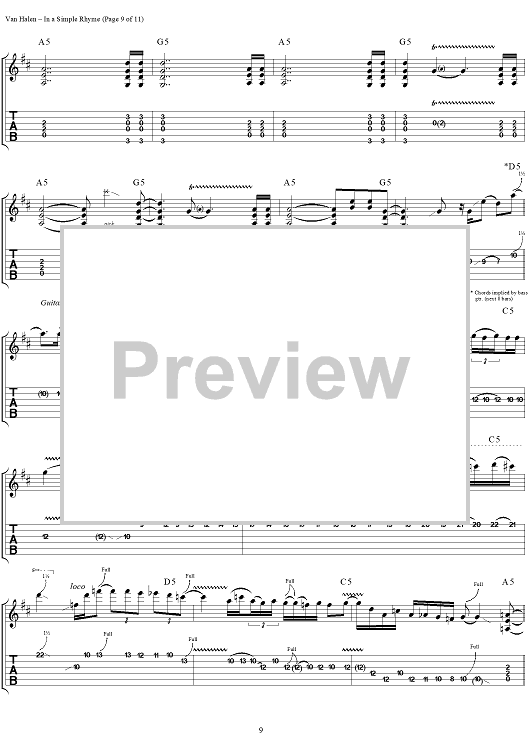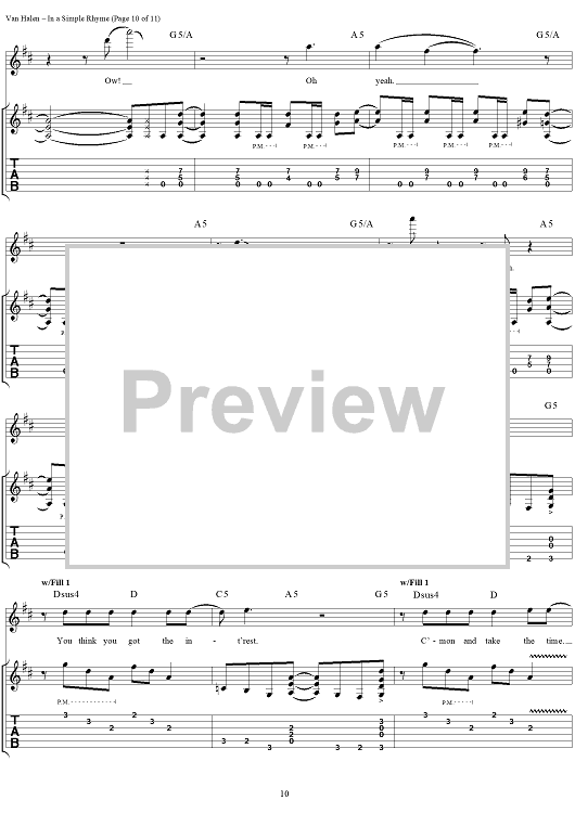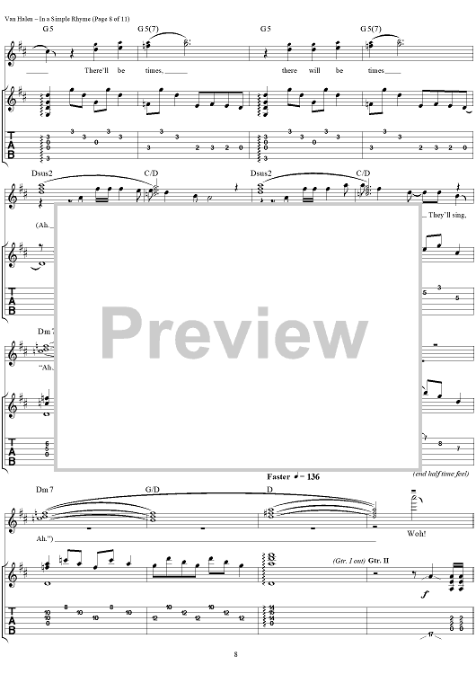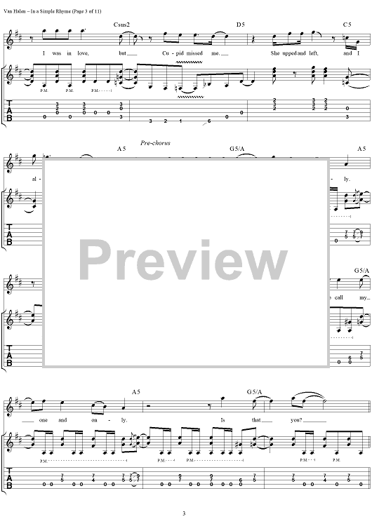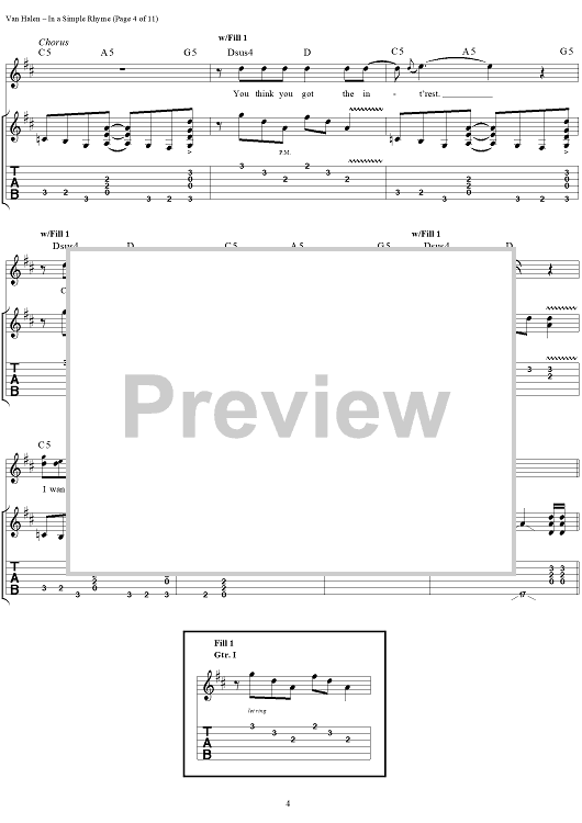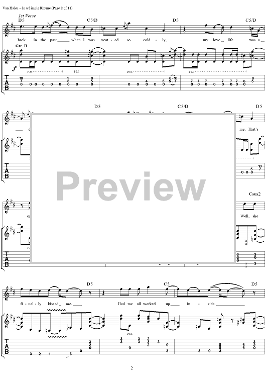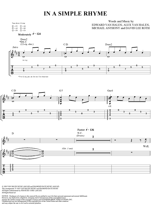Digital Sheet Music for In a Simple Rhyme by Eddie Van Halen, David Lee Roth, Michael Anthony, Alex Van Halen, Van Halen scored for Guitar Tab/Vocal; id:113411