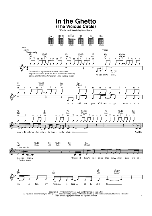 "In The Ghetto (The Vicious Circle)" Sheet Music by Elvis Presley