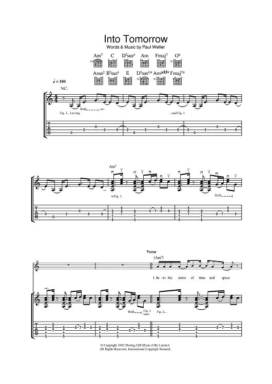 Digital Sheet Music for Into Tomorrow by Paul Weller scored for Guitar Tab; id:396340
