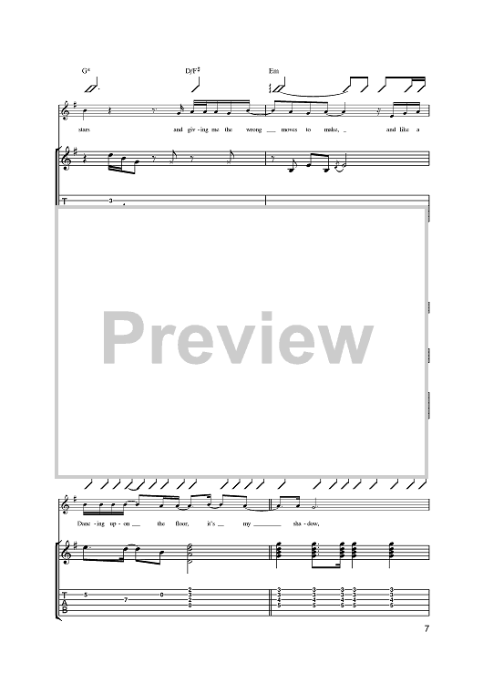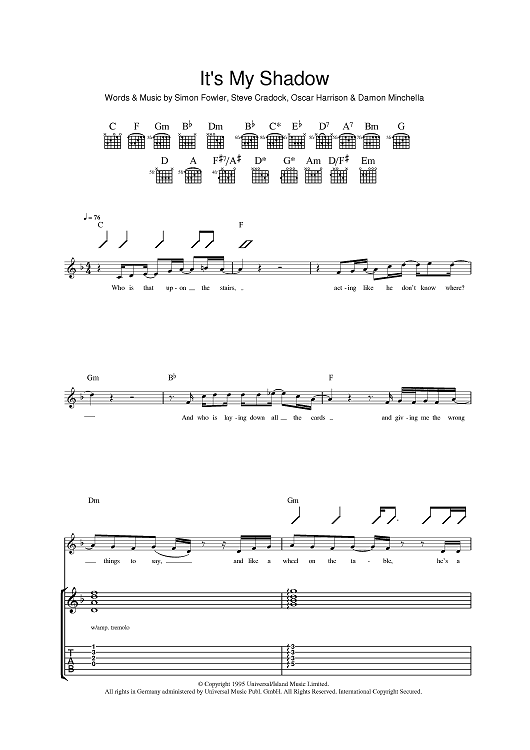 Digital Sheet Music for It's My Shadow by Steve Cradock, Simon Fowler, Oscar Harrison, Damon Minchella, Ocean Colour Scene scored for Guitar Tab; id:393858