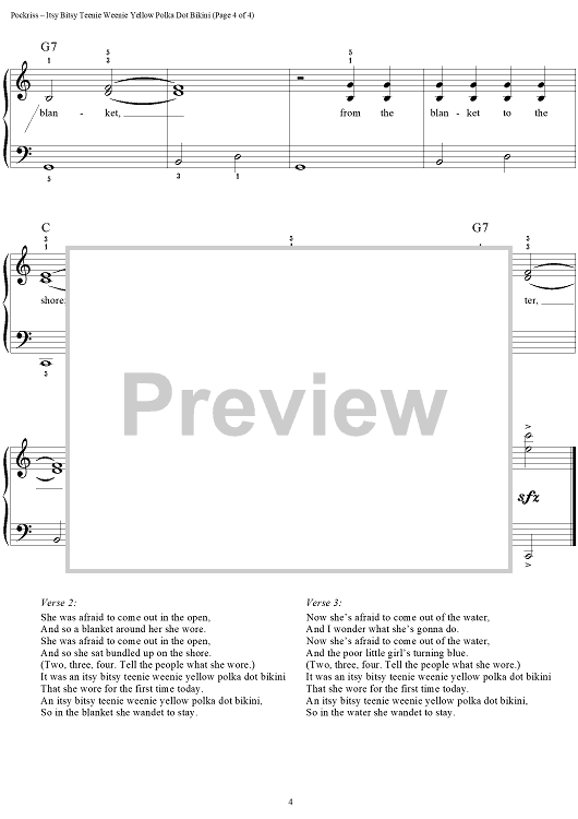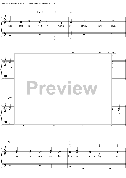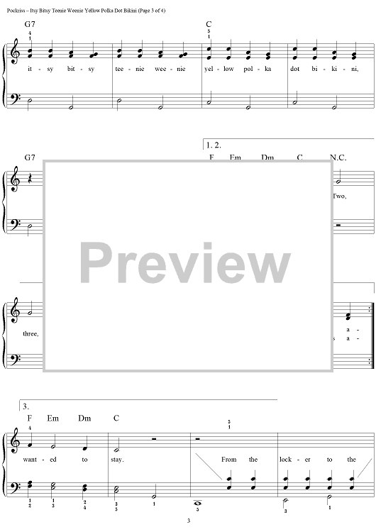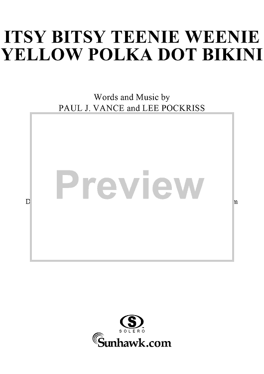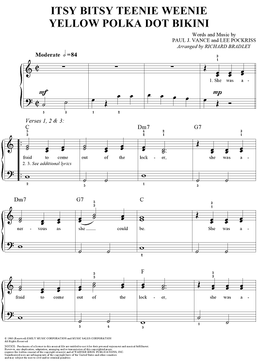 Digital Sheet Music for Itsy Bitsy Teenie Weenie Yellow Polka Dot Bikini by Richard Bradley, Lee Pockriss, Paul Vance, Brian Hyland scored for Easy Piano/Vocal; id:283829