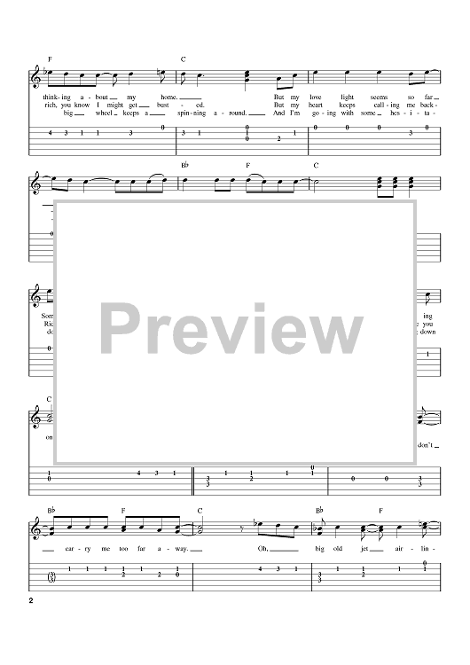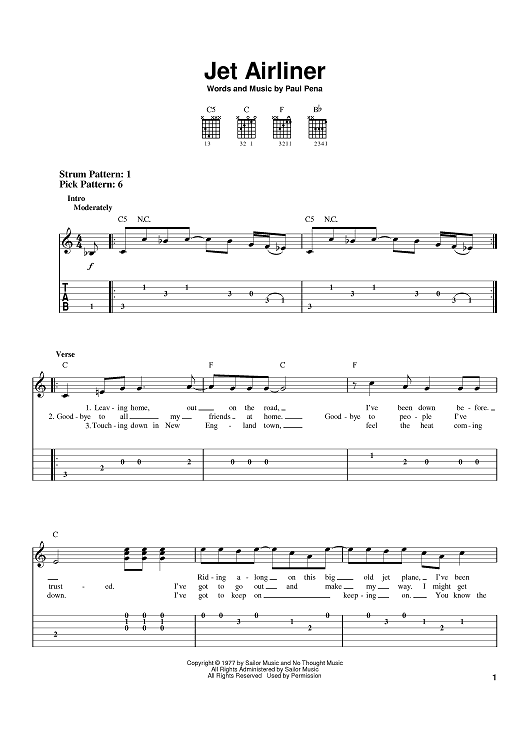 "Jet Airliner" Sheet Music by Steve Miller Band