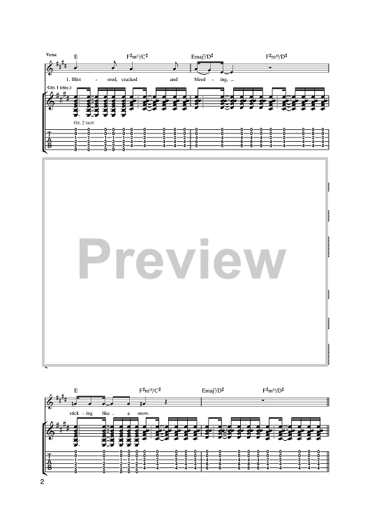 Digital Sheet Music for Joe's Head by Angelo Petraglia, Caleb Followill, Nathan Followill, Kings of Leon scored for Guitar Tab; id:382649