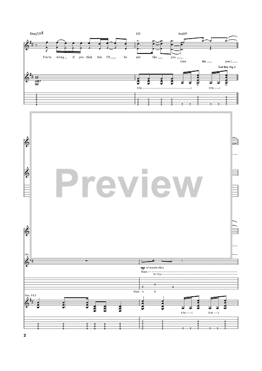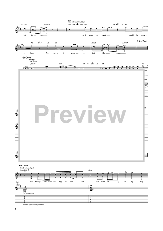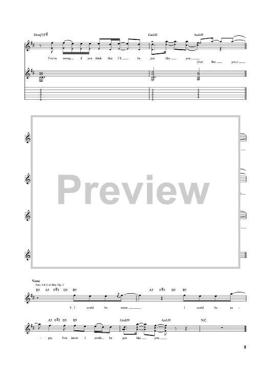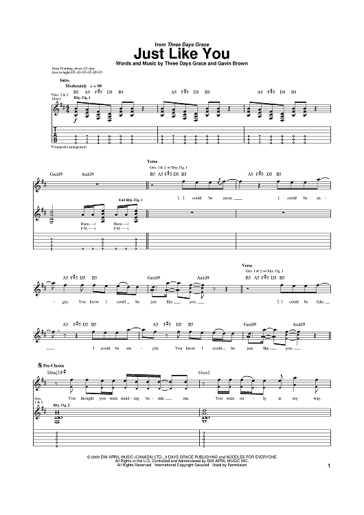 Digital Sheet Music for Just Like You by Golden Brown, Three Days Grace scored for Guitar Tab; id:373633