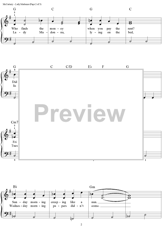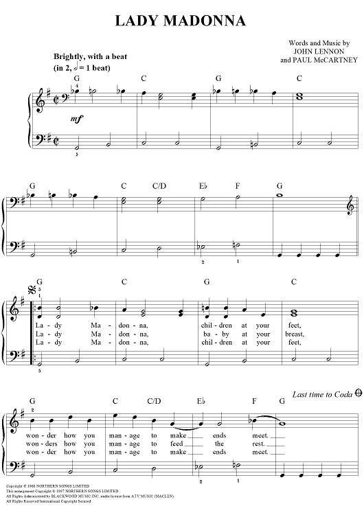 Digital Sheet Music for Lady Madonna by Paul McCartney, The Beatles, John Lennon scored for Easy Piano/Vocal/Chords; id:448666