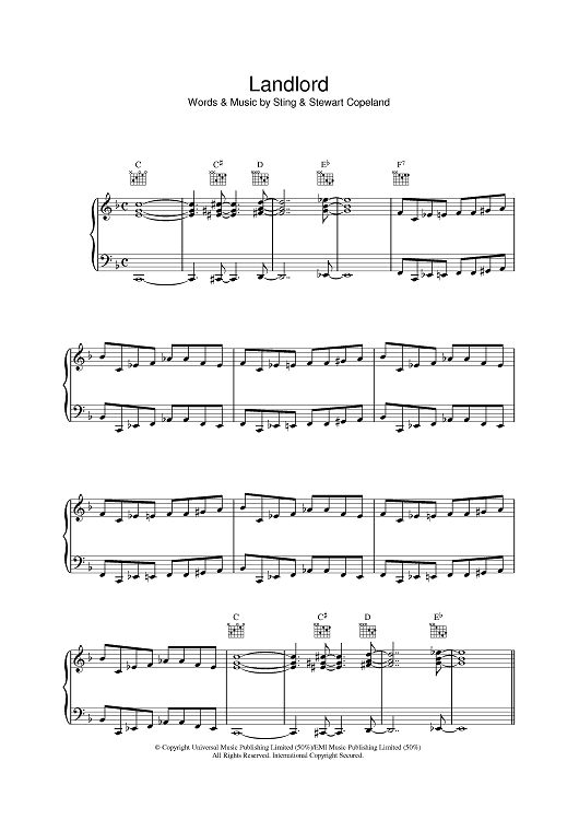 Digital Sheet Music for Landlord by Sting, The Police, Stewart Copeland scored for Piano/Vocal/Chords; id:390817