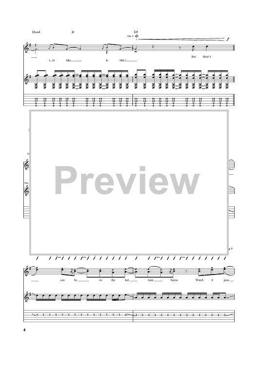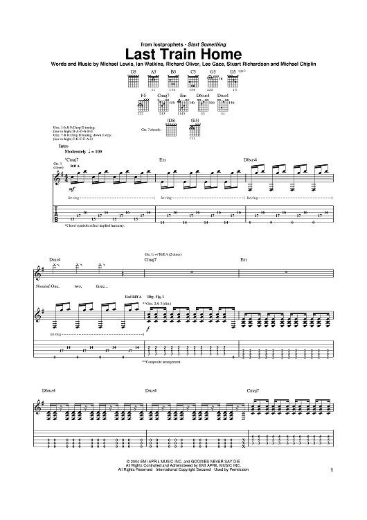 Digital Sheet Music for Last Train Home by Michael Lewis, Lostprophets, Richard Oliver, Ian Watkins scored for Guitar Tab; id:374980