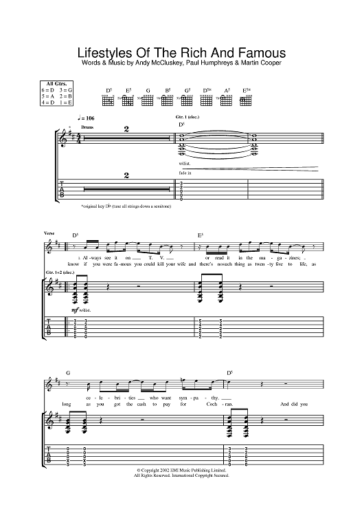 Digital Sheet Music for Lifestyles Of The Rich And Famous by Benji Madden, Joel Madden, Good Charlotte scored for Guitar Tab; id:382957