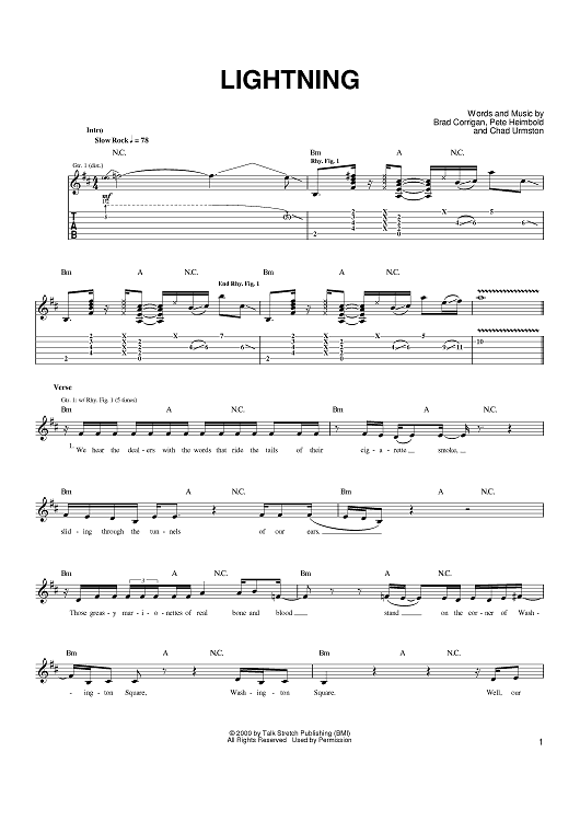 Digital Sheet Music for Lightning by Brad Corrigan, Dispatch, Pete Francis Heimbold, Chad Urmston scored for Guitar Tab; id:372987