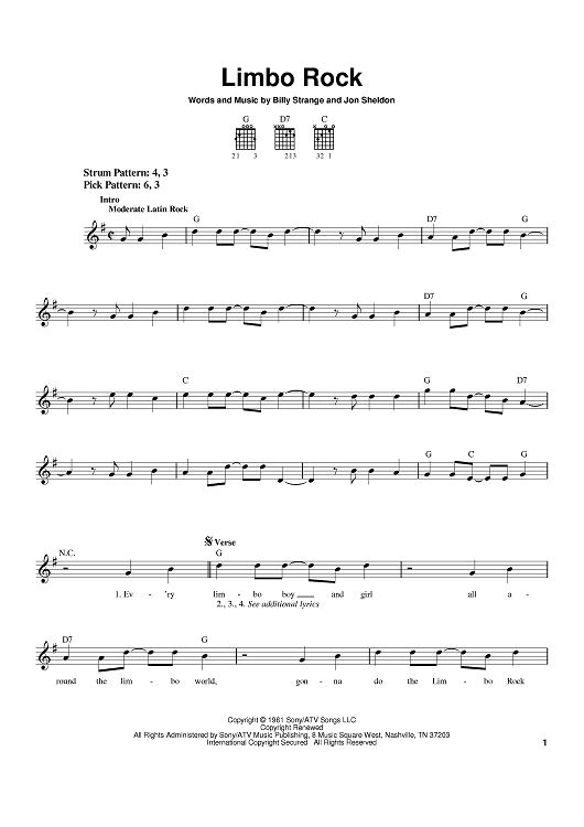 Digital Sheet Music for Limbo Rock by Chubby Checker, Jon Sheldon, Billy Strange scored for Easy Guitar; id:369547