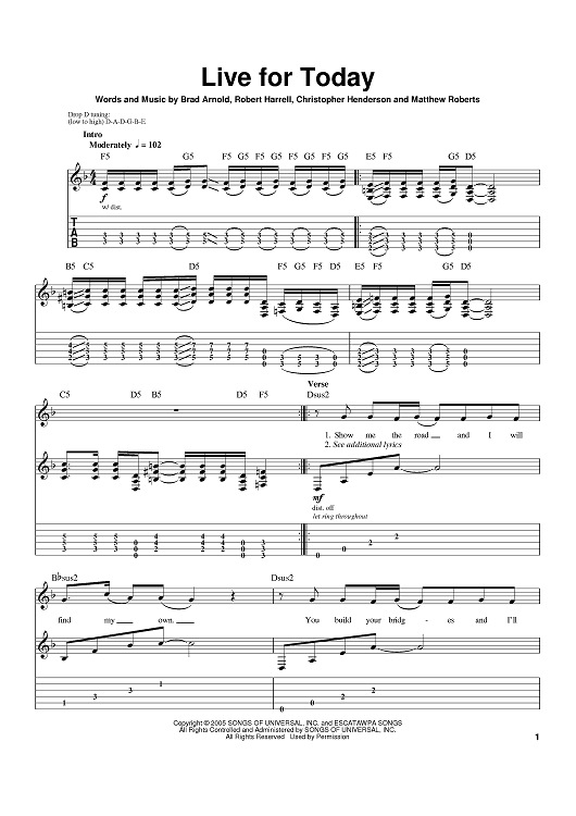 Digital Sheet Music for Live For Today by 3 Doors Down, Matt Roberts, Brad Arnold, Todd Harrell, Chris Henderson scored for Guitar Tab; id:392851
