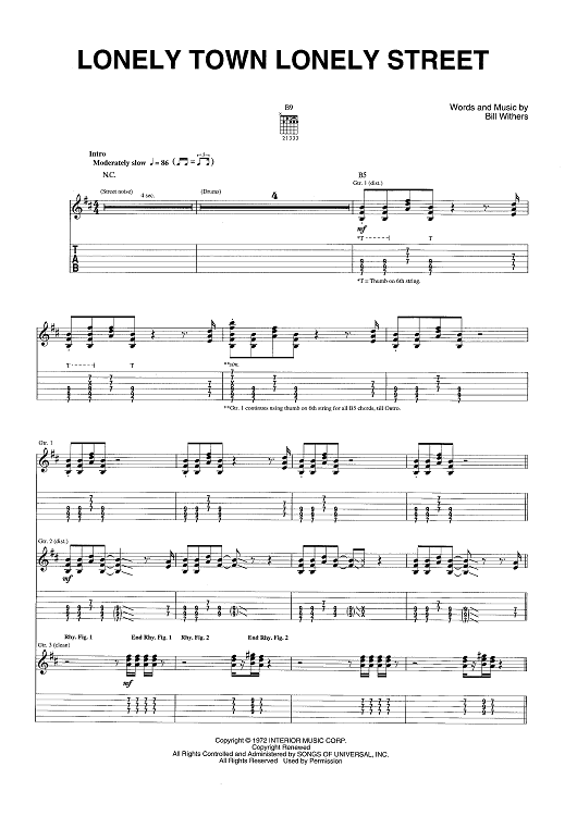 Digital Sheet Music for Lonely Town Lonely Street by Bill Withers, Joe Bonamassa scored for Guitar Tab/Vocal/Chords; id:457995