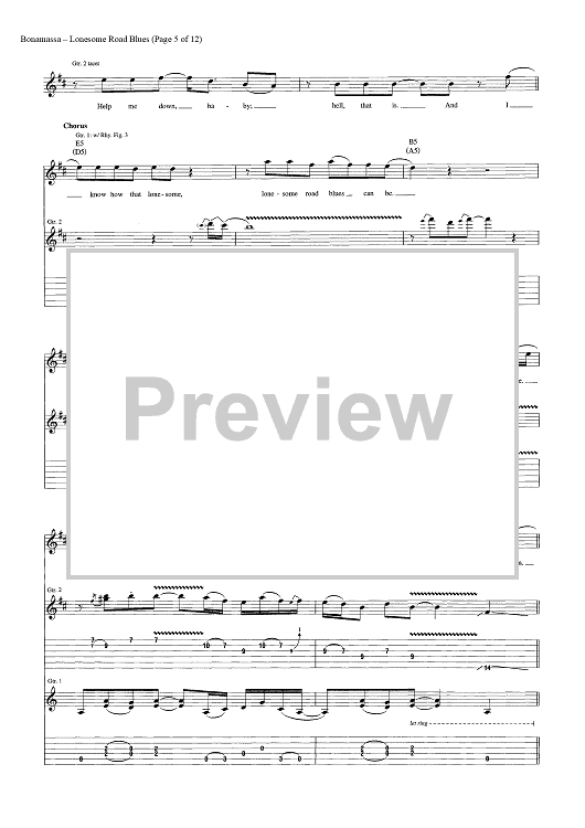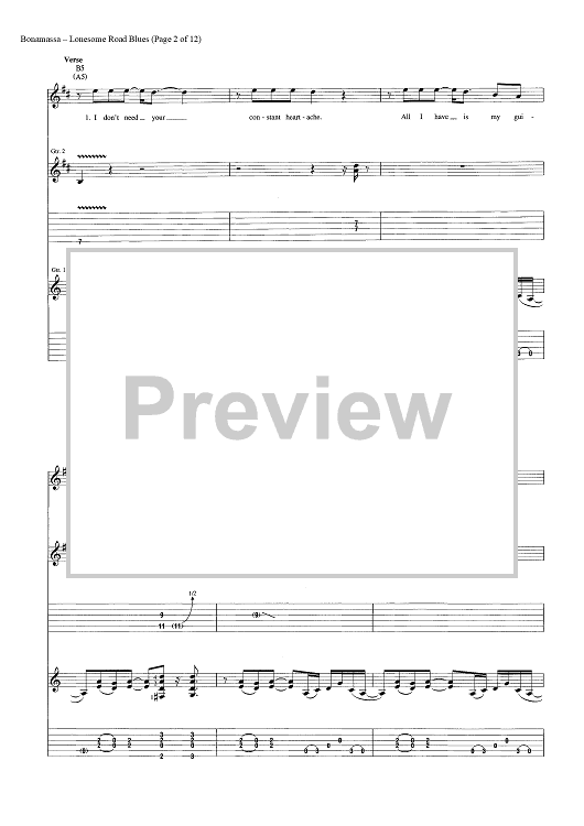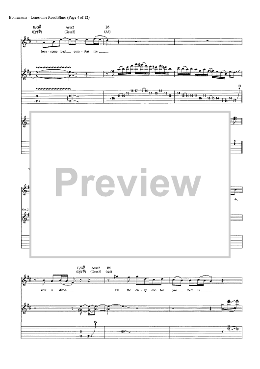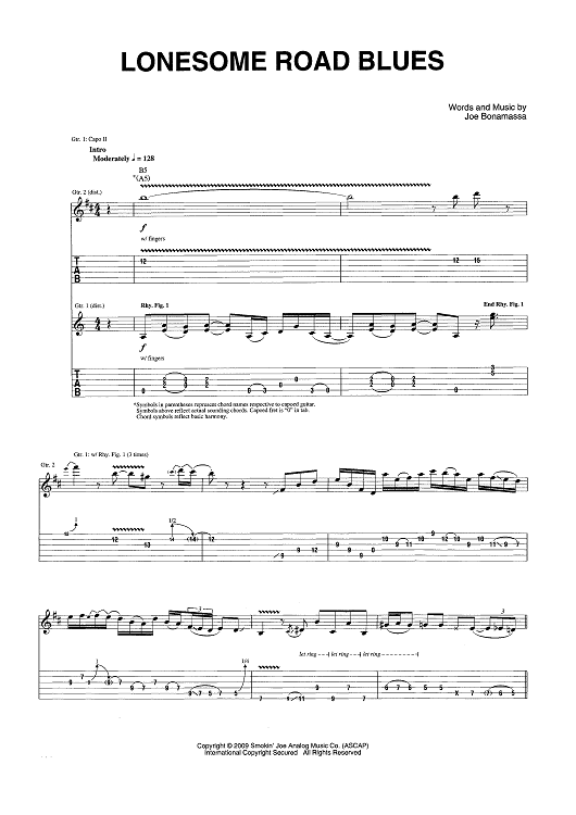 Digital Sheet Music for Lonesome Road Blues by Joe Bonamassa scored for Guitar Tab/Vocal/Chords; id:465488
