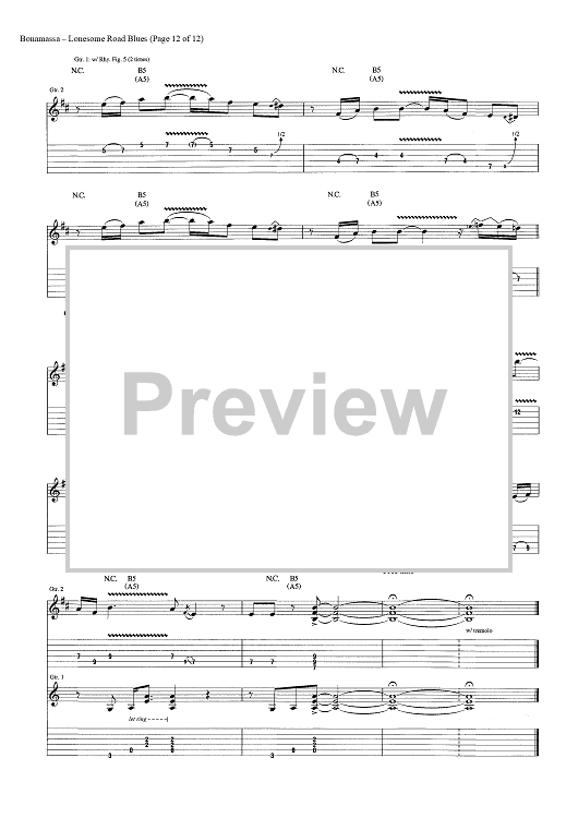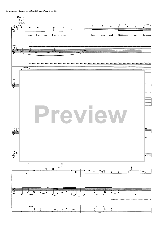 "Lonesome Road Blues" Sheet Music by Joe Bonamassa