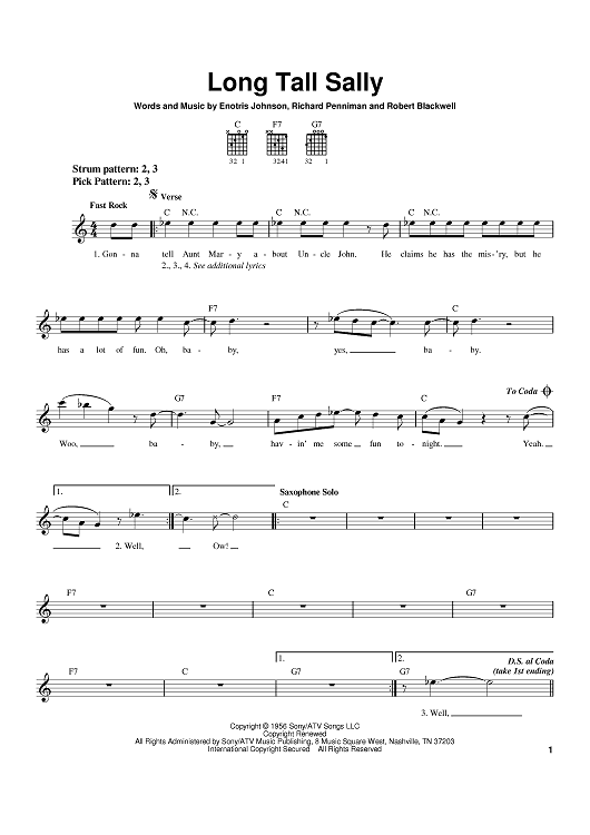 Digital Sheet Music for Long Tall Sally by The Beatles, Robert Blackwell, Little Richard, Pat Boone, Enotris Johnson scored for Easy Guitar; id:369551