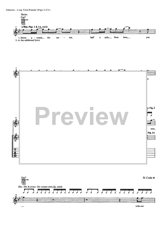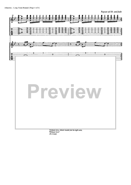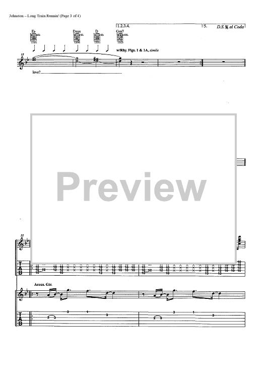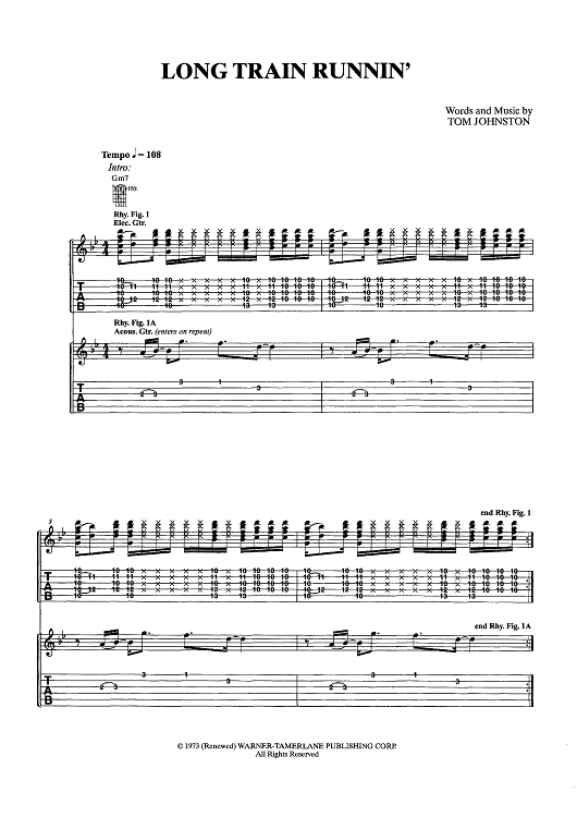 Digital Sheet Music for Long Train Runnin' by Tom Johnston, The Doobie Brothers scored for Easy Guitar Tab/Vocal/Chords; id:449218