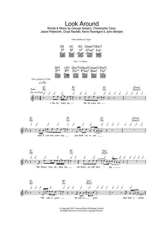 Digital Sheet Music for Look Around by George Astasio, John Bentjen, Christopher Cano, Orson, Jason Pebworth, Chad Rachild, Kevin Roentgen scored for Guitar Tab; id:391424
