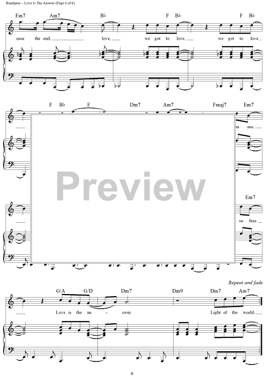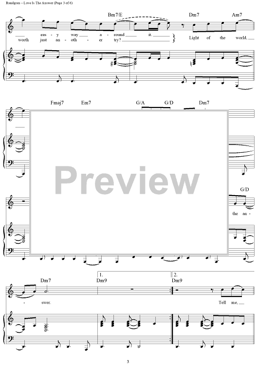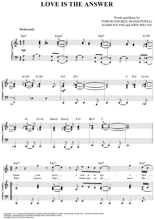"Love Is The Answer" Sheet Music by Todd Rundgren
