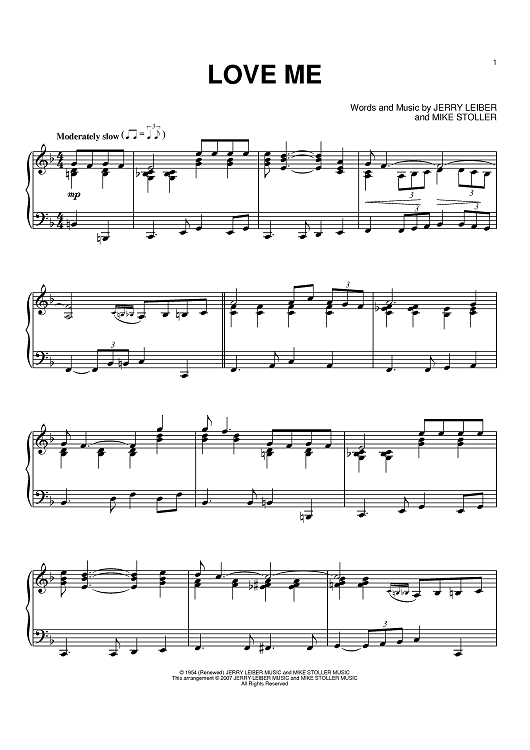 Digital Sheet Music for Love Me by Elvis Presley, Jerry Leiber, Mike Stoller scored for Piano; id:397875