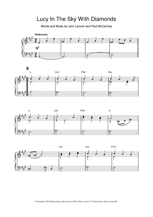 Digital Sheet Music for Lucy In The Sky With Diamonds by The Beatles, John Lennon scored for Piano; id:380970
