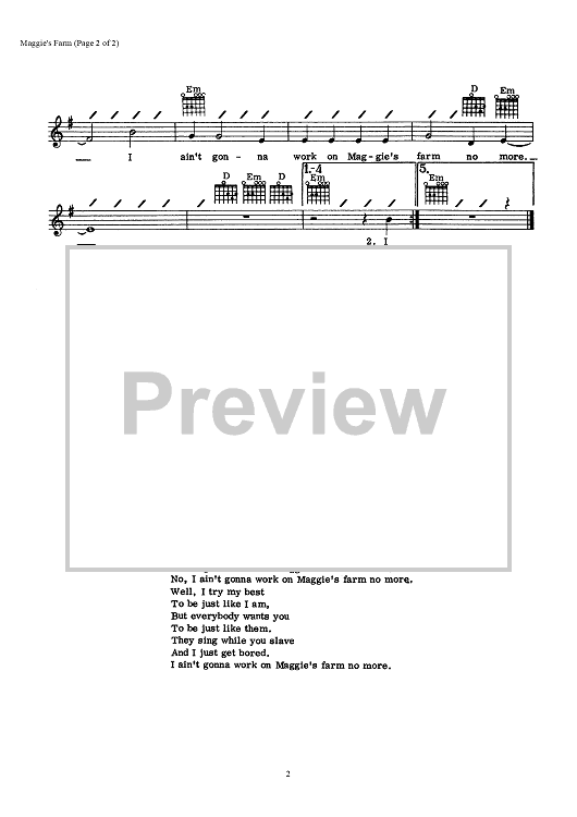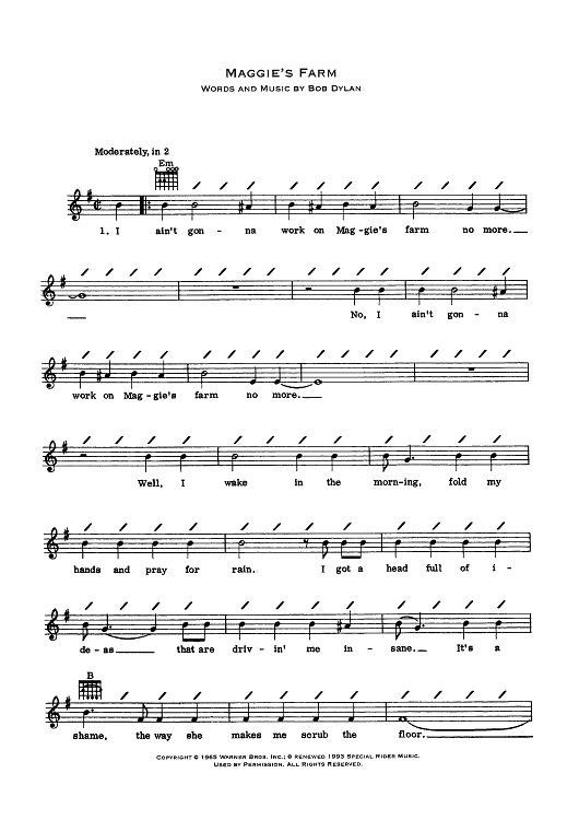 "Maggie's Farm" Sheet Music by Bob Dylan
