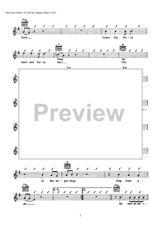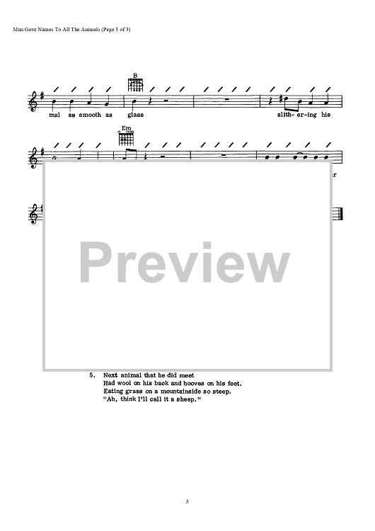 Digital Sheet Music for Man Gave Names To All The Animals by Bob Dylan scored for Lead Sheet; id:466304