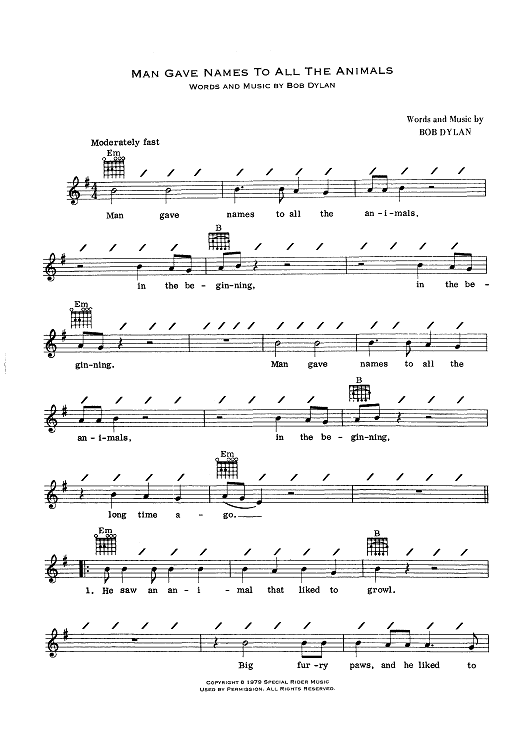 "Man Gave Names To All The Animals" Sheet Music by Bob Dylan