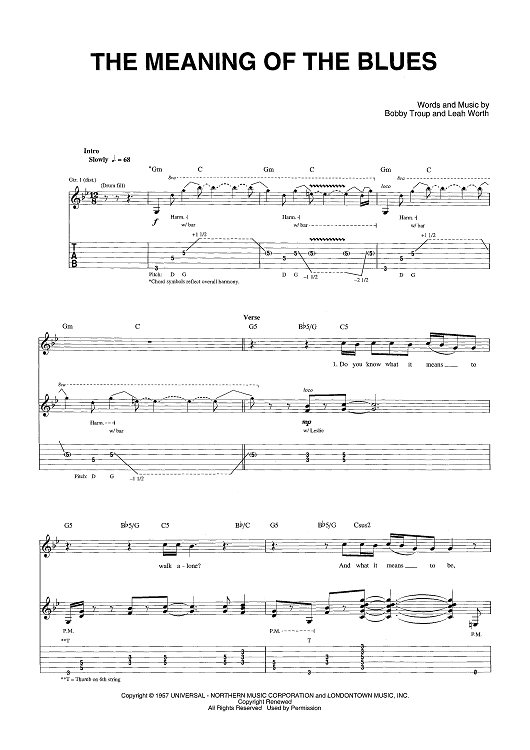 Digital Sheet Music for Meaning Of The Blues by Bobby Troup, Joe Bonamassa, Leah Worth scored for Guitar Tab/Vocal/Chords; id:465531