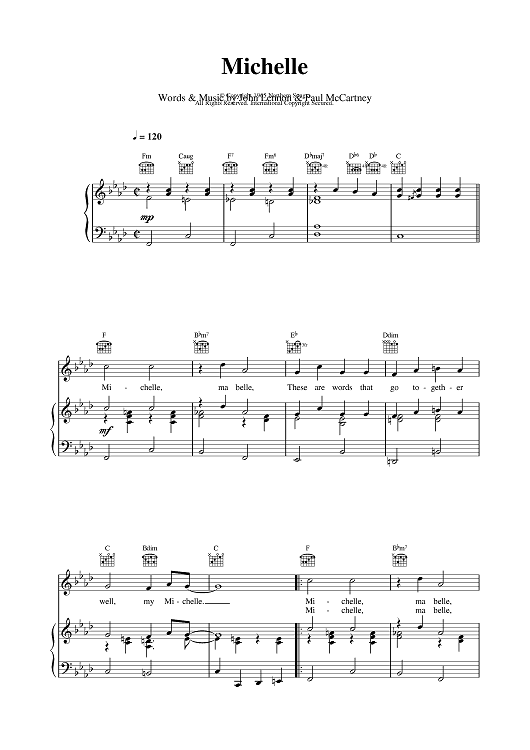Digital Sheet Music for Michelle by Paul McCartney, The Beatles, John Lennon scored for Easy Piano; id:375579