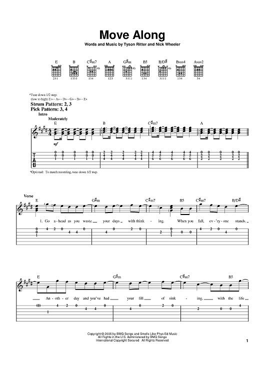 Digital Sheet Music for Move Along by Tyson Ritter, Nick Wheeler scored for Easy Guitar Tab; id:396106