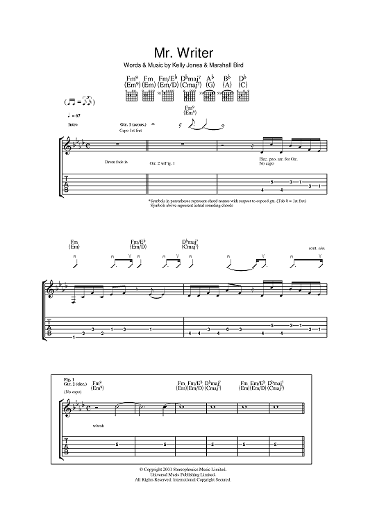 Digital Sheet Music for Mr. Writer by Marshall Bird, Kelly Jones, Stereophonics scored for Guitar Tab; id:393514