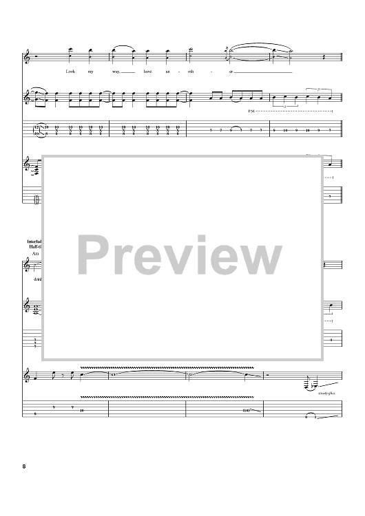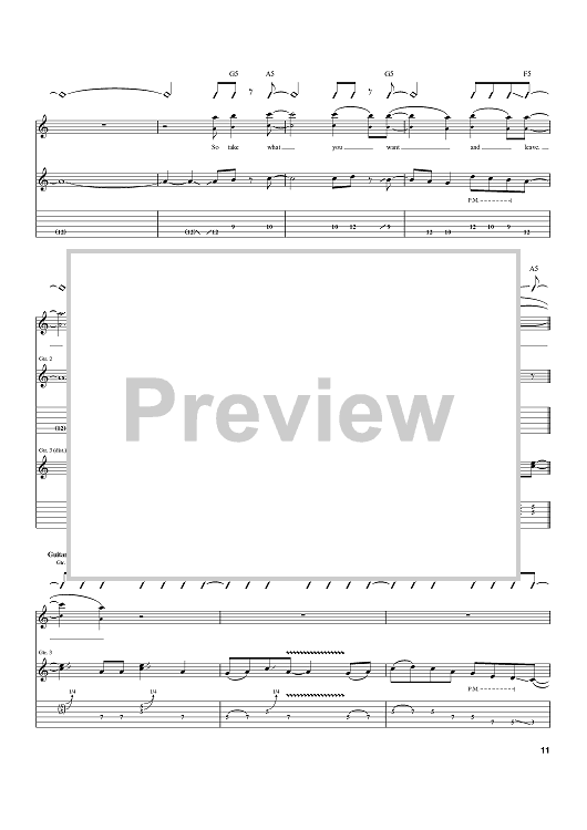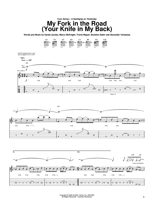 Digital Sheet Music for My Fork In The Road (Your Knife In My Back) by Atreyu, Daniel Jacobs, Marco McKnight, Travis Miguel, Brandon Saller, Alexander Varkatzas scored for Guitar Tab; id:394561