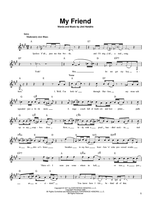 "My Friend" Sheet Music by Jimi Hendrix