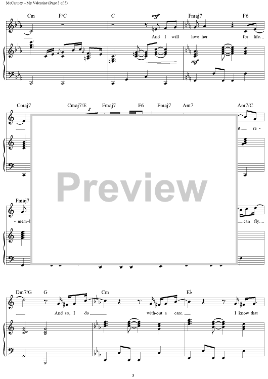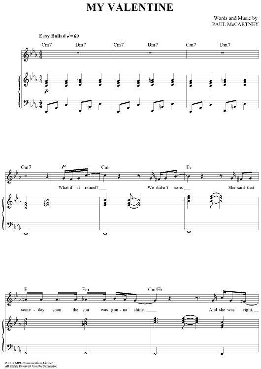 Digital Sheet Music for My Valentine by Paul McCartney scored for Piano/Vocal/Chords; id:429477