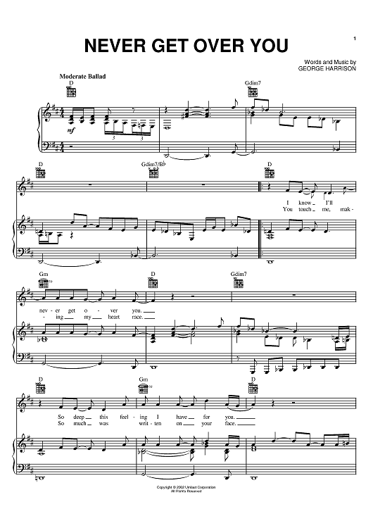 Digital Sheet Music for Never Get Over You by George Harrison scored for Piano/Vocal/Chords; id:372643