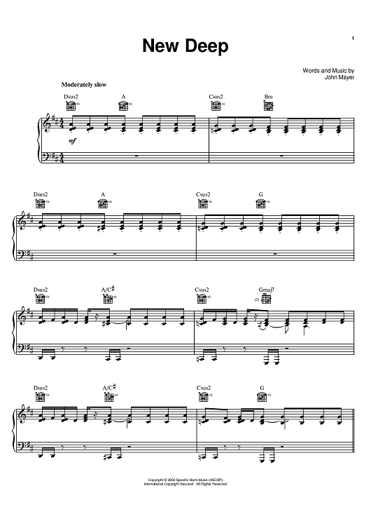 Digital Sheet Music for New Deep by John Mayer scored for Piano/Vocal/Chords; id:373510