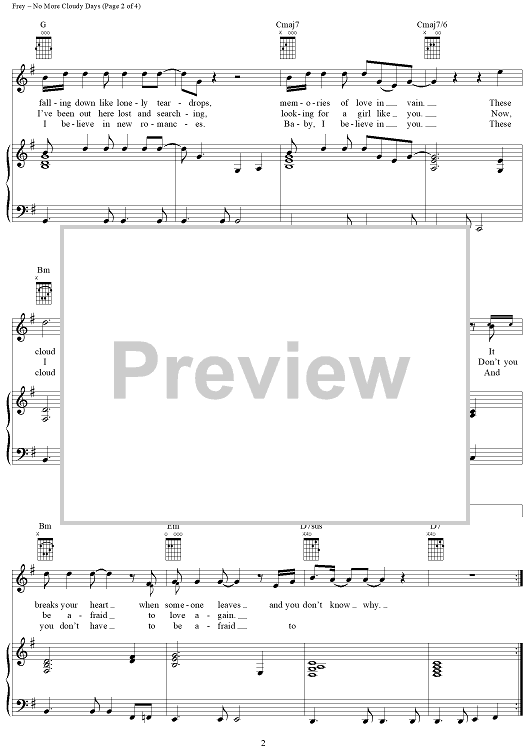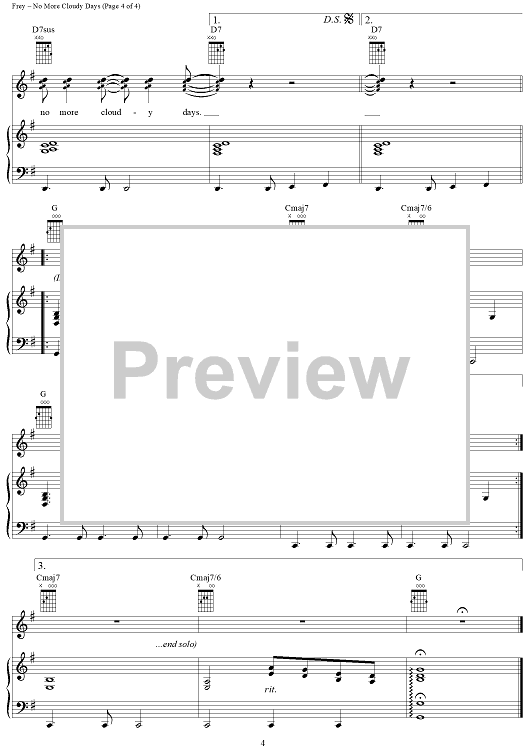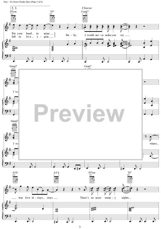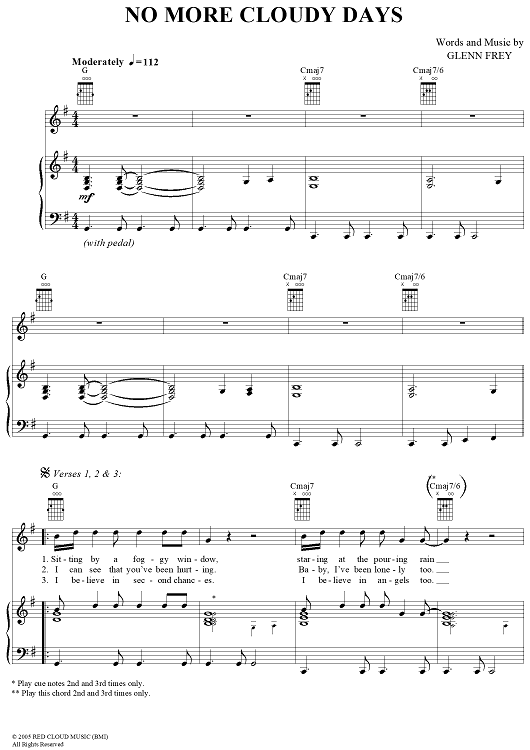 Digital Sheet Music for No More Cloudy Days by Glenn Frey, Eagles scored for Piano/Vocal/Chords; id:315341