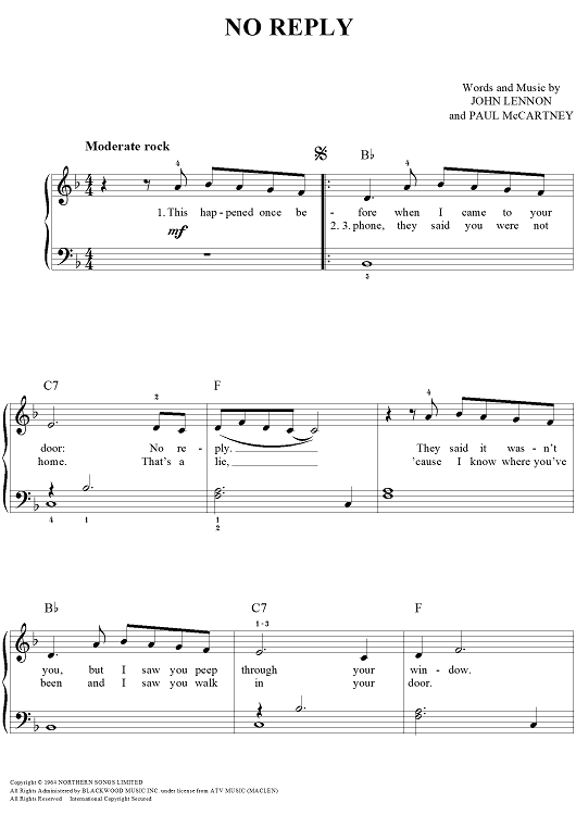 Digital Sheet Music for No Reply by Paul McCartney, The Beatles, John Lennon scored for Easy Piano/Vocal/Chords; id:448682