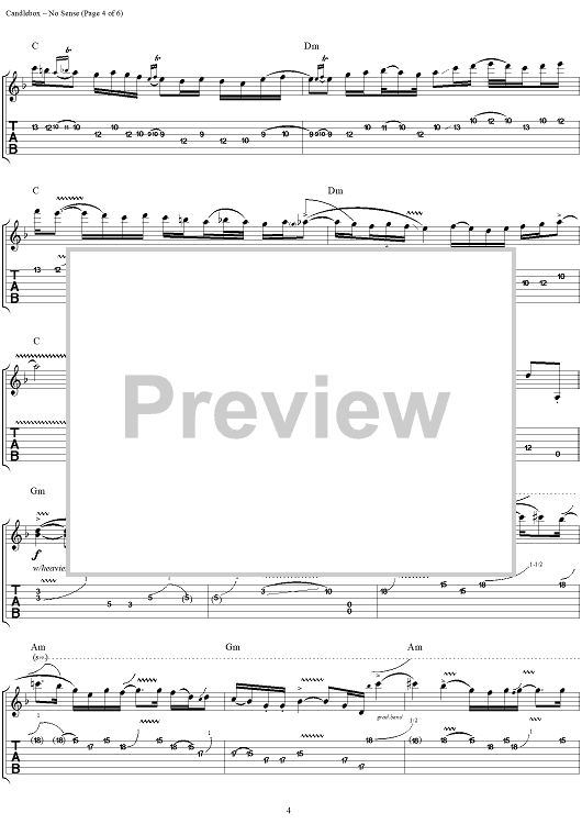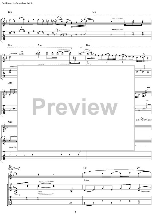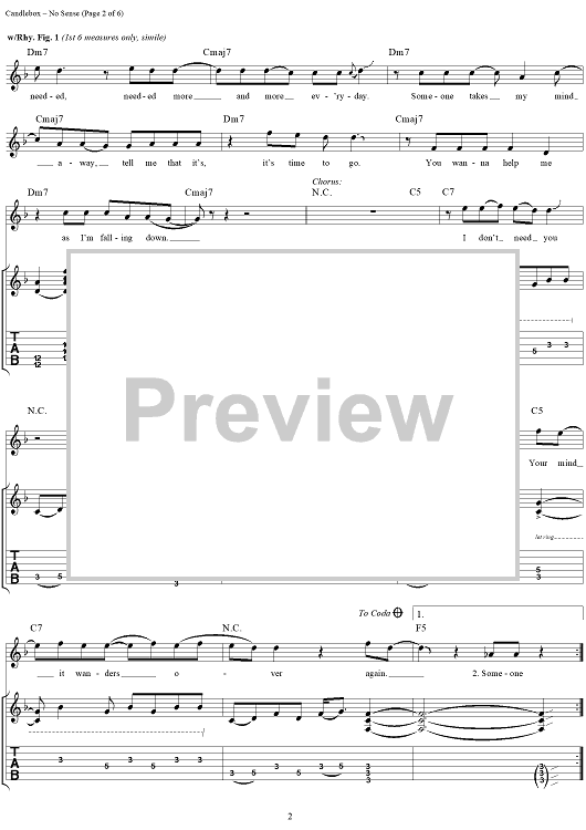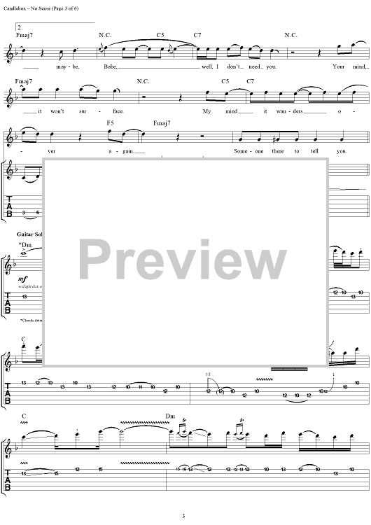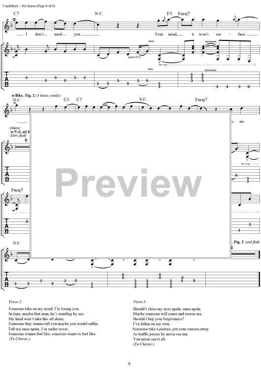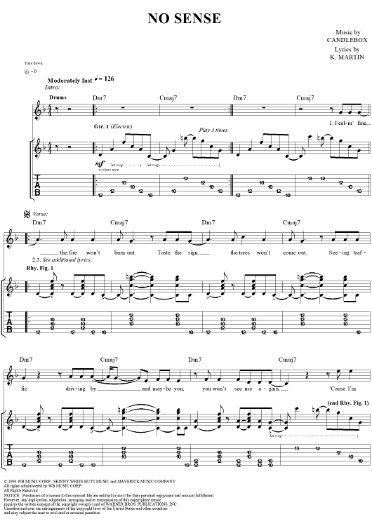 Digital Sheet Music for No Sense by Kevin Martin, Candlebox scored for Guitar Tab/Vocal; id:112924