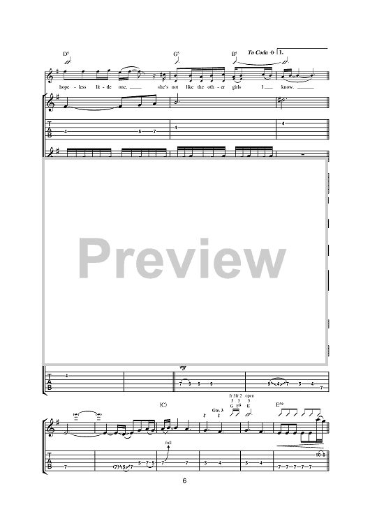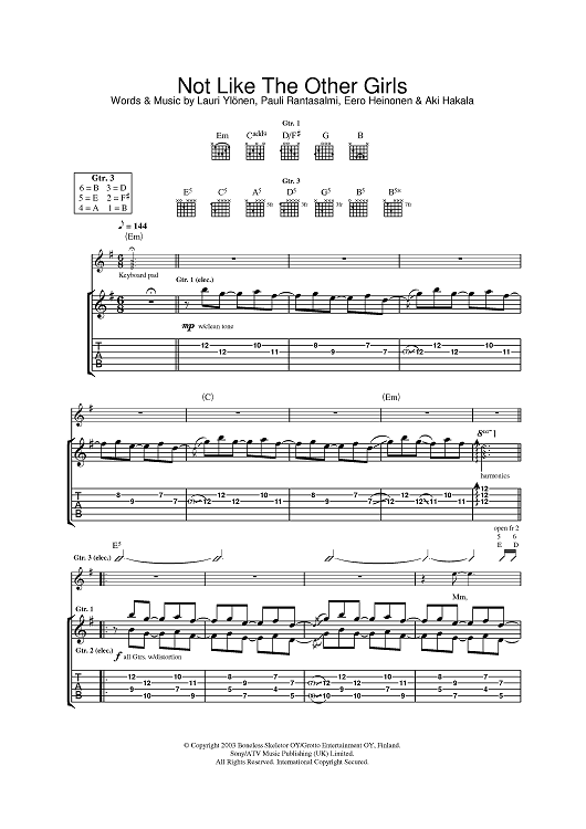 Digital Sheet Music for Not Like The Other Girls by Eero Heinonen, Pauli Rantasalmi, The Rasmus, Lintu scored for Guitar Tab; id:382939