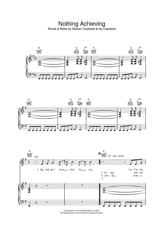 Digital Sheet Music for Nothing Achieving by The Police, Ian Copeland, Stewart Copeland scored for Piano/Vocal/Chords; id:390841