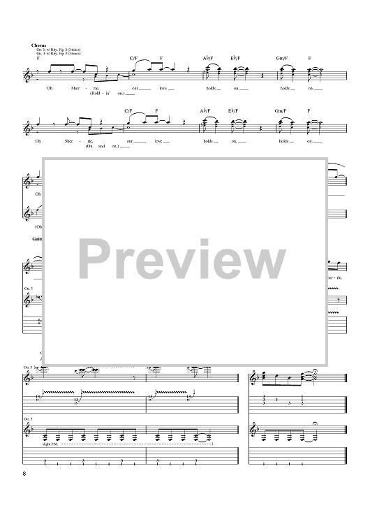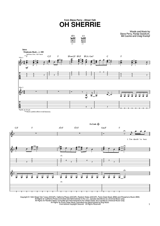 Digital Sheet Music for Oh Sherrie by Steve Perry, Randy Goodrum, Bill Cuomo, Craig Krampf scored for Guitar Tab; id:394191