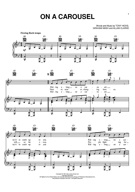 Digital Sheet Music for On A Carousel by Graham Nash, Allan Clarke, Tony Hicks, The Hollies scored for Piano/Vocal/Chords; id:383030
