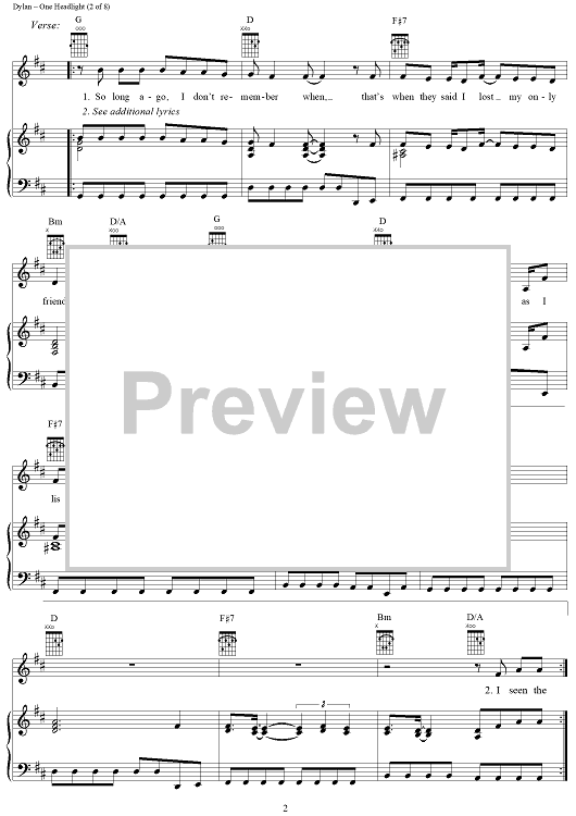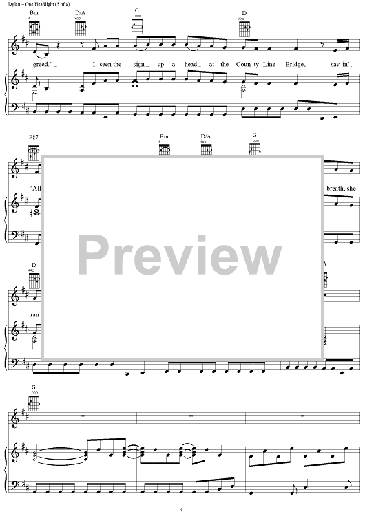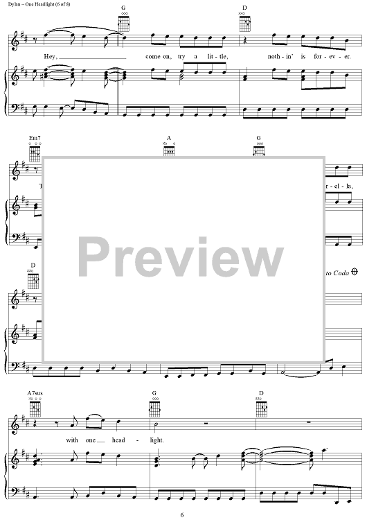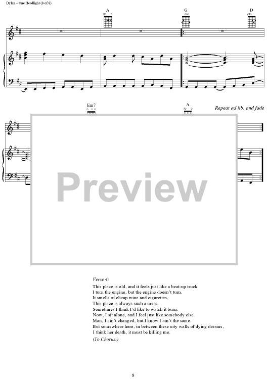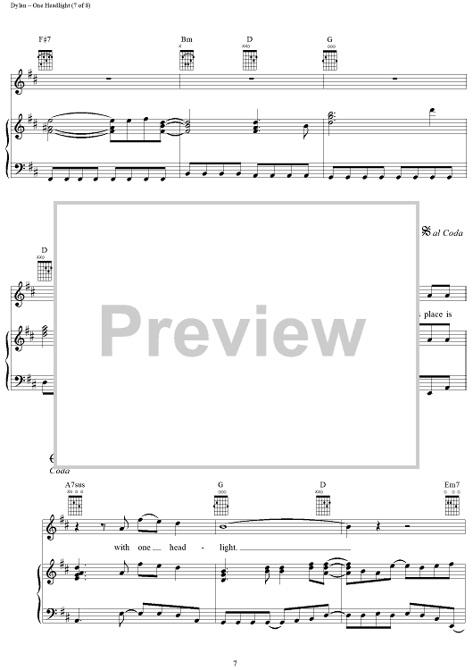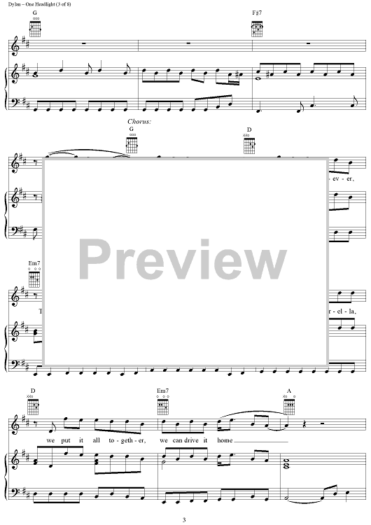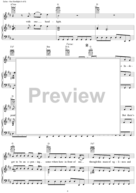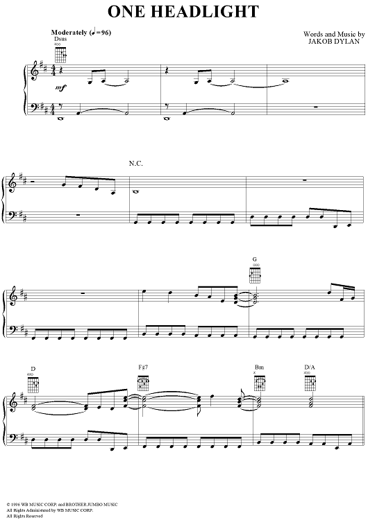 Digital Sheet Music for One Headlight by Jakob Dylan, The Wallflowers scored for Piano/Vocal/Chords; id:94759
