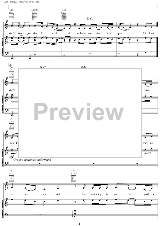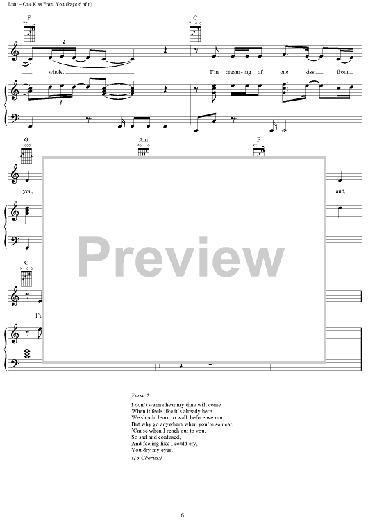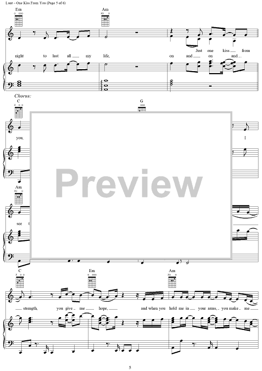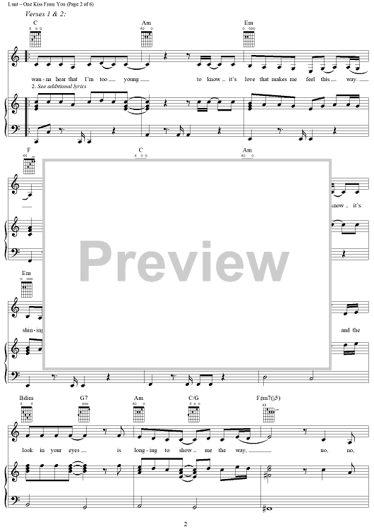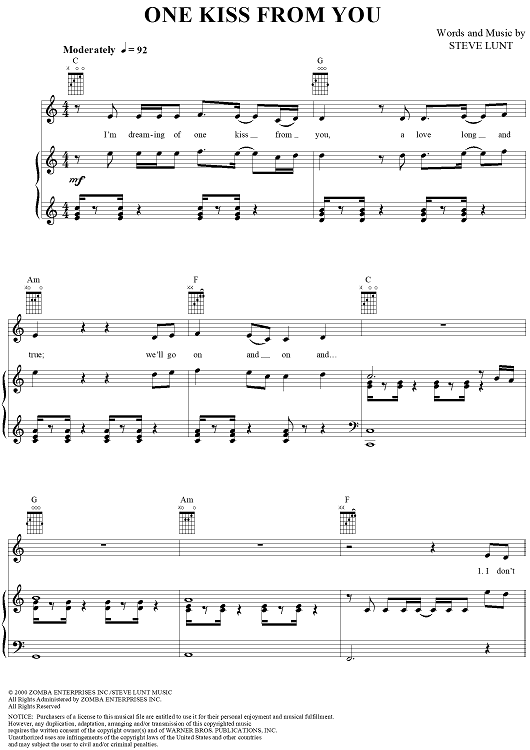 Digital Sheet Music for One Kiss From You by Steve Lunt, Britney Spears scored for Piano/Vocal/Chords; id:235240