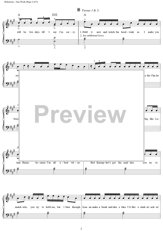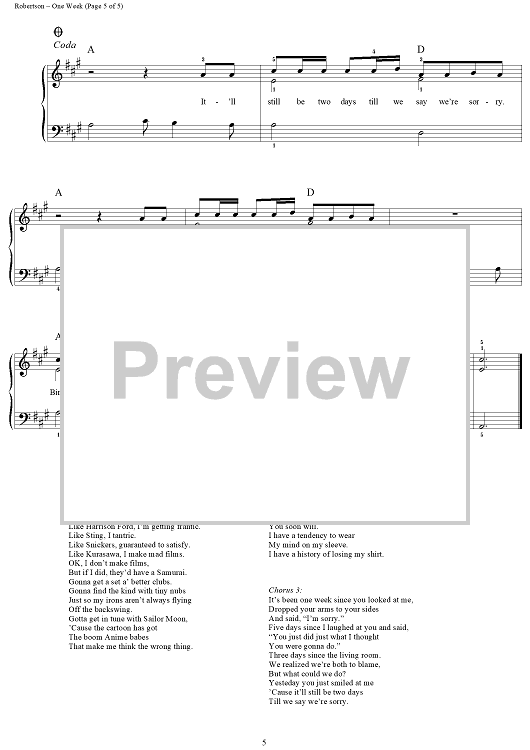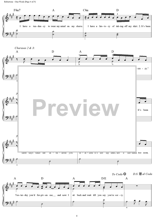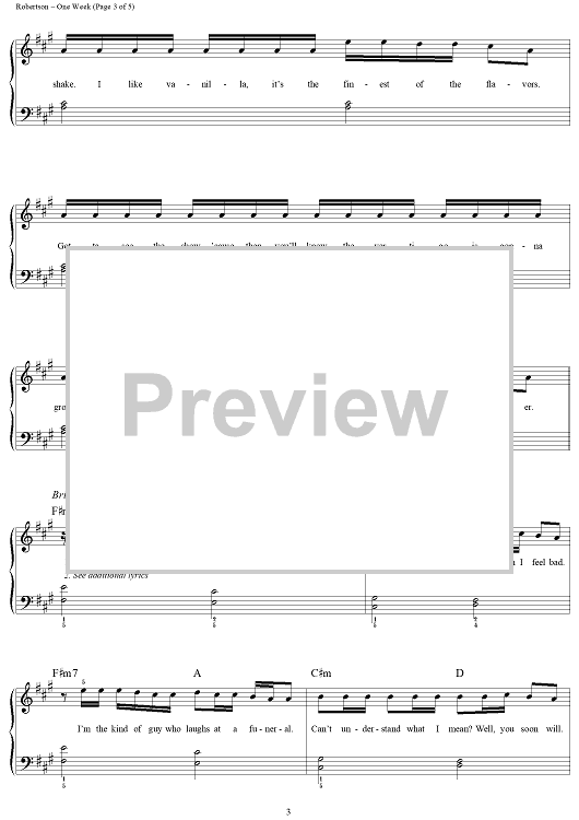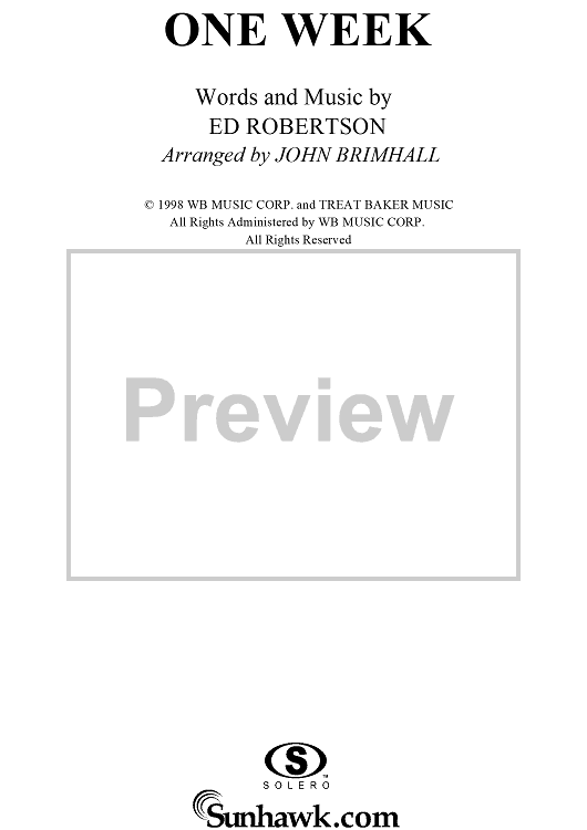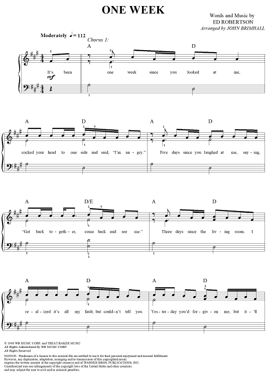 Digital Sheet Music for One Week by Ed Robertson, John Brimhall, Barenaked Ladies scored for Easy Piano/Vocal; id:120416