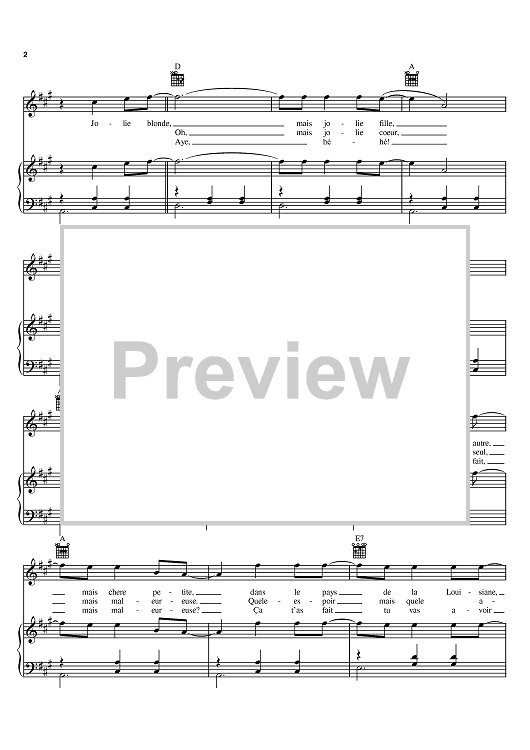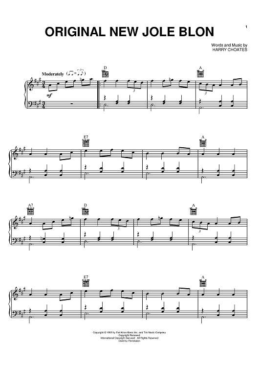 Digital Sheet Music for Original New Jole Blon by Harry Choates scored for Piano/Vocal/Chords; id:383738