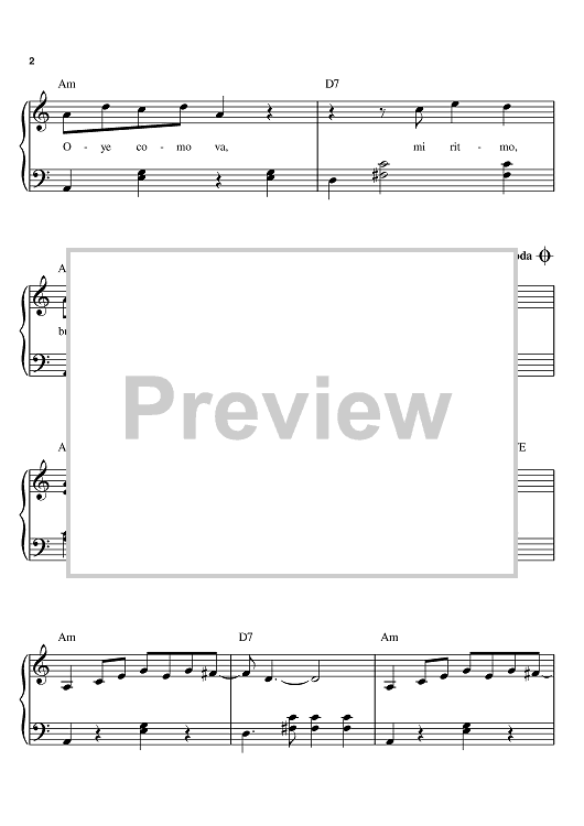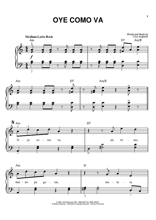 Digital Sheet Music for Oye Como Va by Tito Puente, Santana scored for Easy Piano; id:368917