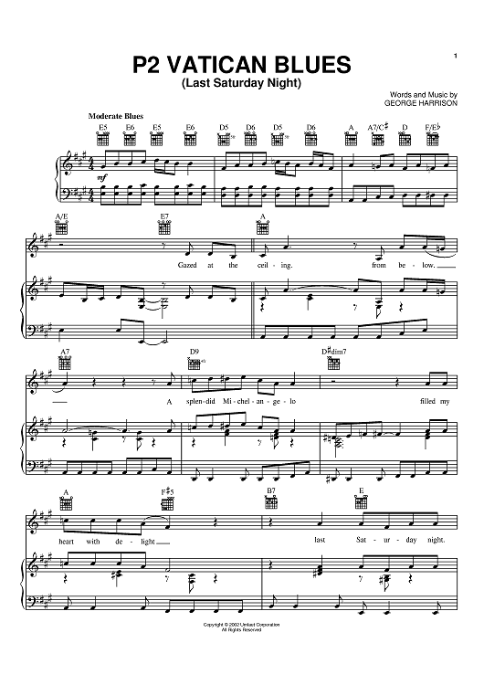 "P2 Vatican Blues (Last Saturday Night)" Sheet Music by George Harrison