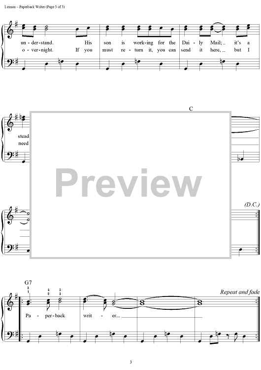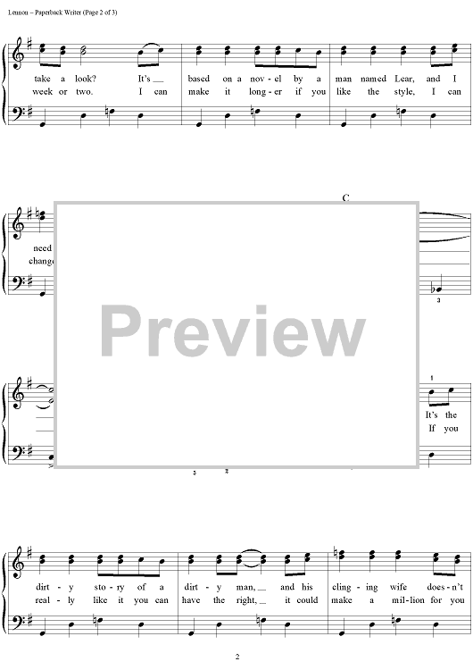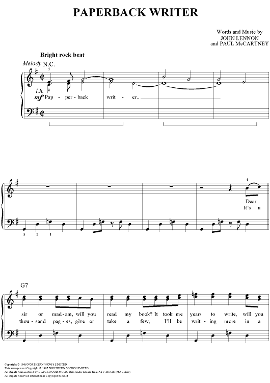 Digital Sheet Music for Paperback Writer by Paul McCartney, The Beatles, John Lennon scored for Easy Piano/Vocal/Chords; id:450197
